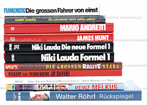 Bücherkonvolut 11tlg. darunter z.B.: „Graf Berghe von Trips” von J.T. Födisch; „Jo Siffert” & „Die grossen Fahrer von Einst” von R. Frankenberg, etc. de. Text, weitere Titel entnehmen Sie bitte unserem Katalogbild