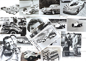 Konvolut 58 tlg. darunter 14 original s/w Aufnahmen, sowie 44 neuere Abzüge Porsche Motorsport, darunter u.a.: Graf Trips GP Modena 1960; Le Mans 1960; 1000 Km Nürburgring 1957 & -58 Paul Frere auf Typ 718 RSK, Hahnl auf 356; Barth auf Typ 550A Spyder, Aintree 1960, Moss auf Porsche Typ 718/2, etc. versch. Formate