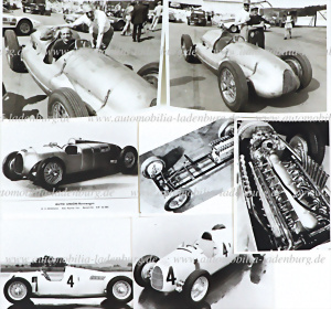 Konvolut 7 tlg. s/w Aufnahmen spätere Abzüge, darunter Typ C 1936, sowie Detailaufnahmen Chassis und Motor 16 Zylinder AU-Rennwagen 1934-1937, versch. Formate