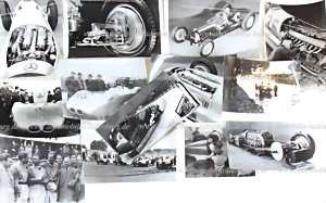 Konvolut 23tlg. darunter 17 original s/w Aufnahmen, sowie 5 spätere Abzüge & eine Farbpostkarte, Mercedes-Benz Silberpfeile und Rekordwagen, darunter u.a.: Weltrekordwagen T80 Konstruktion; Hermann Lang Postkarte; GP Italien 1938 Start; Caracciola GP Schweiz 1938; Manfred v. Brauchitsch bei Kesselbergrennen 1934, etc. versch. Formate