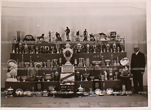 Orig. s/w Aufnahme Karl Jörns neben seinen gewonnenen Preisen 13x18 cm
