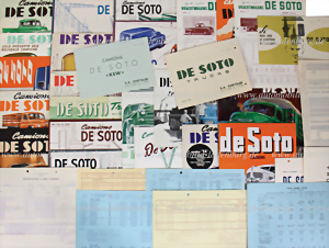 40er-50er Jahre, Konvolut 24tlg. Falt-/Einblattprospekte, Kataloge, sowie Preislisten für De Soto Nutzfahrzeuge, en., franz., niederl. Text, guter Zustand.
