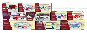 Konvolut 10 tlg. Modelle Nutzfahrzeuge, darunter 8 der Limited Heritage Collction wie z.B.: Bernard Type 110 Fourgon; Simca Cargo; Citroen Type 55; Saviem Fourgon, etc., sowie Berger Collection & Daimler Ambulance, Maßstab 1:50, im Originalkarton, guter Zustand