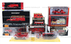 Konvolut 11 tlg. Modelle Feuerwehrautos versch. Hersteller, darunter z.B.: Magirus Deutz Merkur TLF 16 von Minichamps; Krupp DL 52 Feuerwehr Essen von ixo (noch eingeschweisst); 1960 Mack C-Rescue Box von Signature Models; Ford C Series Pumper, etc. größstenteils im Maßstab 1:43/1:50, im Originalkarton, guter Zustand