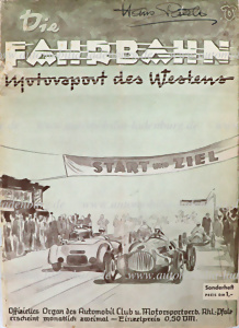 1949, Ausgabe 3 der Zeitschrift "Die Fahrbahn Motorsport des Westens", datiert auf den 01.09.1949, 12 Seiten deutscher Text, innen u.a.: mit Ergebnissen des Herxheimrennens aller Klassen; Berichten über Schauinsland & Nürburgring sowie "und Karl startet wieder - eine lebensmutige Geschichte von Hans Stuck", Titelseite mit Namen versehen, dem Alter entsprechend guter Zustand