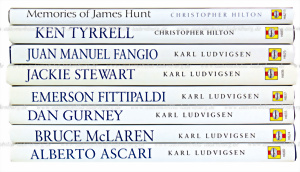 Bücherkonvolut 8tlg. Rennfahrerportraits, darunter z.B.: „Juan Manuel Fangio Motor Racings Grand Master”; „Alberto Ascari Ferraris First Double Champion” von Karl Ludvigsen; „Memoirs of James Hunt” von Christopher Hilton, etc., en. Text, weitere Titel entnehmen Sie bitte unserem Katalogbild