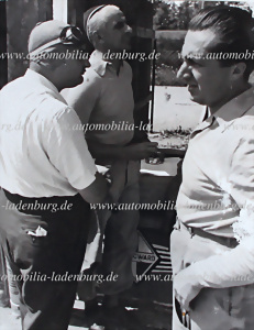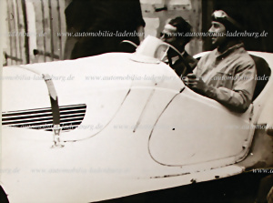 original s/w Aufnahme, Willi Krakau im BMW Eigenbau, rechts im Bild der BMW Eigenbau von Walther Assenheimer, Hockenheimring 1949, 18x24cm