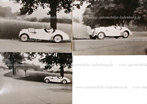 Konvolut 4tlg., darunter zwei original s/w Aufnahmen, Willi Krakau auf BMW Eigenbau, Rund um Schotten 1948, dazu zwei Abzüge neueren Datums, 13x18 und 21x30cm