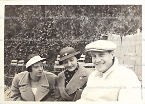 1935, original s/w Aufnahme, Hans Stuck mit Paula von Stuck (von Reznicek) und eine weitere Tennisspielerin als Zuschauer auf den Tennisplätzen in Cannes, 13x18cm