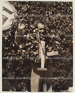 30.6.1935, original s/w Aufnahme (Presse Illustrationen Hoffmann), Hans Stuck nach seinem Sieg in der Gruppe Rennwagen, Internationales Kesselbergrennen, 18x24cm