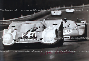 handsignierte s/w Aufnahme, Hans Herrmann, das Foto zeigt Hans Herrmann auf Porsche 917, 1000km Spa 1970, 17x24cm