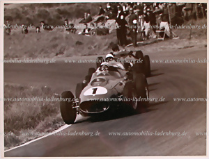 original s/w Aufnahme, Phil Hill auf Ferrari 246 Dino F1, Grand Prix Reims, 18x24cm