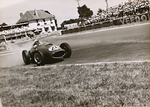 original s/w Aufnahme, Peter Collins bei Testfahrten mit dem Ferrari 801, 13x18cm