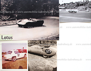 Konvolut 4tlg., darunter 3 s/w Aufnahmen (2 originale / 1x Abzug), sowie Farbaufnahme, u.a. Lotus Eleven von Charles Vögele; Karl Foitek auf Lotus 23B-S Freiburg Schauinsland 1964; Jean Wauters auf Lotus Elite 1216ccm GP Zolder; Wolfgang Seidel auf Lotus Elite, Preis von Wien 1961, verschiedene Formate