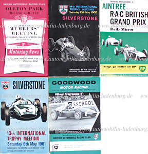 Konvolut 5 Programmhefte u.a. Goodwood Easter Monday 1960; British Grand Prix Aintree 1961; Silverstone 1961 & 1962; Oulton Park B.A.R.C. Members Meeting 1962