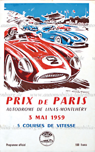 Programmheft Prix de Paris Montlhery 1959, inkl. Teilnehmerliste u.a. Ponzy, Gendebien, Bourillot auf Ferrari 250GT, Faraut, Dargone, Zanchi auf Maserati, Houdusse auf Porsche Spyder, Jean Pons auf OSCA
