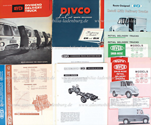 Konvolut 11 Verkaufsprospekte 40er-70er Jahre, Divco LKW, u.a. Verkaufskatalog Modelle UM / ULM; Divco Spartan Six; Divco Golden Missile 4; Models 206 / 200; 306 / 300; Milk Delivery Truck...