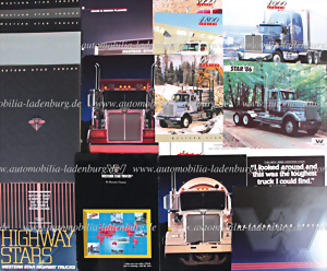 Konvolut 20 Verkaufsprospekte Western Star 80er Jahre, u.a. Modellprogramme Western Trucks; technische Daten Model 4842..., engl. Text