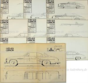 Konvolut 12 original Drucke Entwürfe (Blaupausen) für Hotchkiss, je ca. 25x41cm