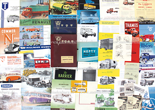 1930-60er Jahre, Konvolut über 45 tlg.Verkaufsprospekte/-broschüren Nutzfahrzeuge verschiedener Hersteller wie Albion, Karrier; Dennis; Plaxtons, etc. darunter Modelle wie z.B.: Albion Clansman; Renault 7 Tonnes; Karrier C K 3; Morris Katalog 1953; Douglas Katalog; Marathon Mark IV; Commer N... mehr