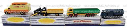 Konvolut 4 tlg. Dinky Supertoys Modelle, darunter Nr. 642 "Pressure Refueler"; Nr. 930 "Bedford Pallet Jekta Van"; Nr. 934 "Leyland Octopus Wagon" sowie Nr. 958 "Snow Plough", sehr guter Zustand, im Originalkarton