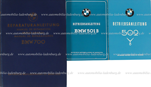 50er Jahre, Konvolut 3 tlg. darunter Reparaturanleitung BMW 700 4.1960, dreisprachig, BMW 502 V Betriebsanleitung April 1955 sowie BMW 501 B Betriebsanleitung 3.1954, deutscher Text, mit Gebrauchsspuren