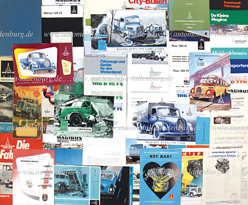 50er-80er Jahre, Konvolut mehr als 60tlg. Verkaufsprospekte, Zeitschriften und Spezifikationen Nutzfahrzeuge, darunter z.B.: Werks-Rundschau1950-53; F8L 614; Mercur; Feuerwehr-& Kommunalfahrzeuge; Pluto 200 FS; Mercur 126 FL; Saturn; 0 3500; S 3500; etc. de./nl./fr. Text, mit Gebrauchsspuren