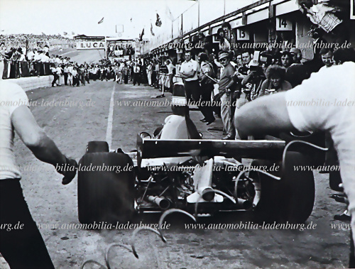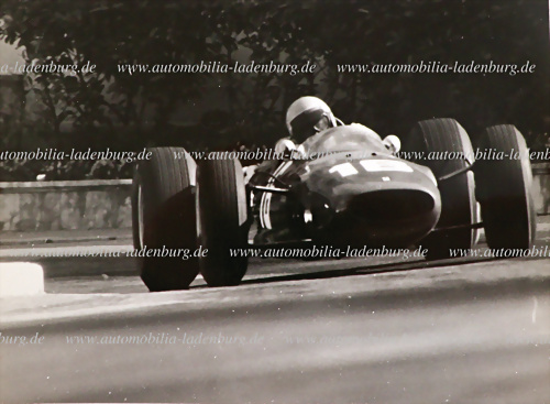 Original s/w Aufnahme Lorenzo Bandini auf Ferrari 246 "Tasman", GP Monaco 1966, Bandini belegte den 2.Platz, gestempelt "A.H.Rottensteiner", 17x23cm