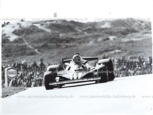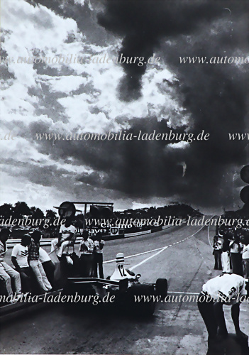 Original s/w Aufnahme Niki Lauda auf Ferrari 312T, GP Belgien 1975, 18x13cm, gestempelt "Helmut Lackinger", schönes Foto