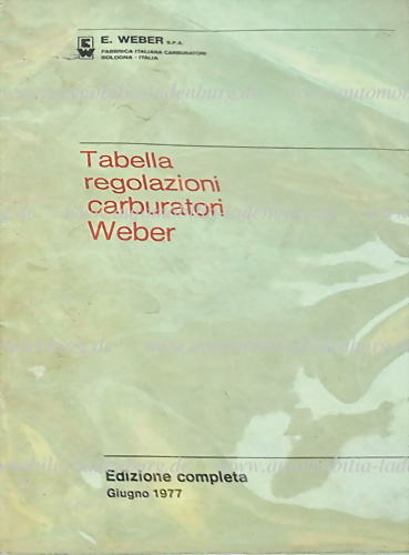 1977, Katalog Einstelltabelle für Weber Vergaser, u.a. für Alfa Romeo, Aston Martin, Ferrari, Lamborghini...