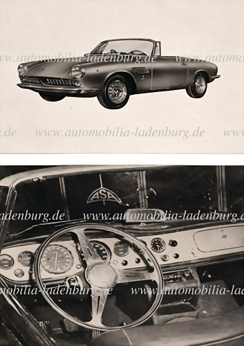 Konvolut 2 original s/w Aufnahmen darunter original Werksfoto ASA 1000GT Cabriolet, sowie Cockpitaufnahme ASA 1000GT, verschiedene Formate