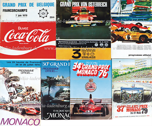 Konvolut 5 Programmhefte Grand Prix Automobile Monaco, darunter die Jahre 1970, 1971, 1972, 1976, 1979, dazu Programmheft GP Österreich 1970, sowie GP Belgien 1979, gelocht, ansonsten guter Zustand