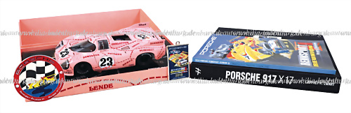 Konvolut darunter Buch "Porsche 917x17" von Jeffrey R. Swart, 264 Seiten deutscher Text, im Leinenumschlag, limitierte Auflage (0830), dazu Programmheft Rennsport Reunion 2018, inkl. Plakette und Schlüsselanhänger, Modellauto Porsche 917, 1:18 Hersteller "Minichamps" mit Sound
