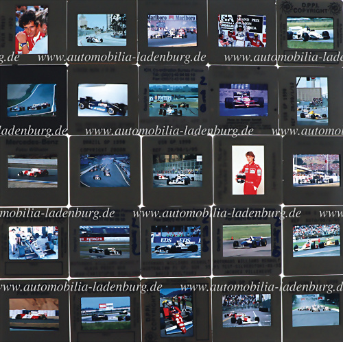 Konvolut 60 Farbdiapositive darunter 50 Dias Formel 1 80er-90er Jahre, sowie 10 Dias Rallyesport, u.a. GP Brasilien 1990; GP USA 1990; Patrick Tambay auf Ferrari 126C2 Saison 1983; Startszene GP Ungarn; Fahrer wie Alain Prost; Jean Alesi; Jan Magnussen; GP Spanien 1988...