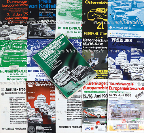 Konvolut 21 Programmhefte Zeltweg 1973-1987, Tourenwagen EM, Formel 3 EM, Schweizer Meisterschaft, nationale Rennen, Truck EM..., teilweise gelocht