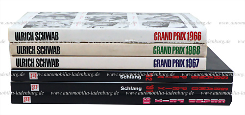Bücherkonvolut 6tlg., darunter 3 Bände "Grand Prix" von Ulrich Schwab 1966, 1967, 1968, sowie 3 Bände "Grand Prix" von Achim Schlang 1990, 1991, 1992