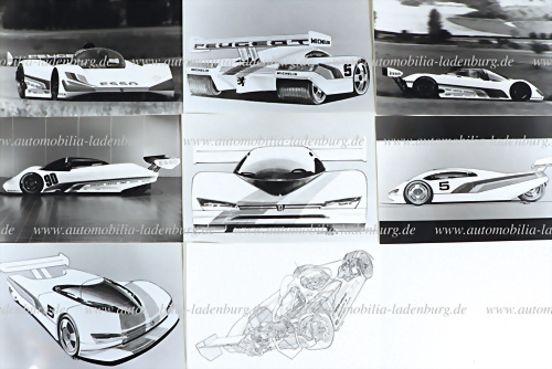 Konvolut 8 s/w Pressefotos Peugeot 905 EVO Le Mans Prototyp, 20,5x29,5cm