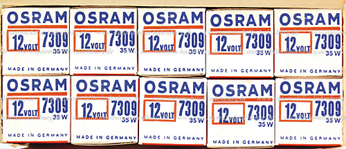 NOS, Karton mit 9 Packungen a 10 Stück 12V 35W Osram Glühbirnen "7309" / "900 631 112 90", insgesamt 90 Stück