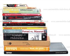 Bücher Konvolut 16 tlg. darunter 12 Ferrari Bücher wie z.B.: "Ferrari Pininfarina" von E. Cornil; "Enzo Ferrari & Maranello" von CoBaPo in OVP; "Ferrari Piloti, che gente..." de. Ausgabe von Enzo Ferrari; "Ferrari Cars 1957-1962" von Brookland Books sowie 4 Alfa Romeo Bücher, weitere Titel entnehmen Sie bitte unserem Katalogbild, teilweise mit Gebrauchsspuren, versch. Sprachen