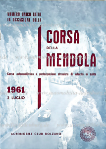 02.07.1961, Reglement "Corsa automobilistica in salita della Mendola", innen mit Anmeldeformularen und Rekordliste, ital. Text, guter Zustand