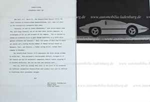 1968, Verkaufsprospekt (Karte), Chinetti/Peak (Michelotti) Ferrari 275 P2 (#0812) rückseitig mit technischen Daten und Beschreibung des Fahrzeuges, dazu Presseschreiben, sehr selten