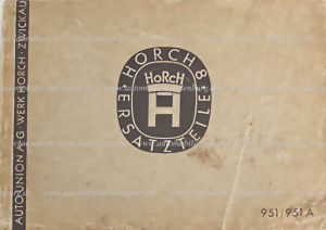 Ausgabe Juli 1938, Ersatzteilkatalog Horch 8 Type 951/A, mit Abbildungen, ohne Preise, Text in deutsch, mit Gebrauchsspuren, dennoch guter Zustand