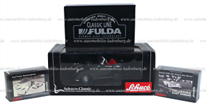 Konvolut 4 tlg. Schuco Modelle, darunter von Kurt Ahrens handsignierter Schuco Piccolo Porsche 917K #28; Porsche Sport Examico Classic Line Fulda Sondermodell; Schuco Piccolo Set "Fulda Stromlinie" sowie Schuco Piccolo Fort Transit Renntransporter, sehr guter Zustand, in OVP, 1:87 / 1:24