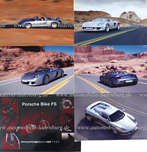 Konvolut 15 tlg. darunter 5 Werksfotos Carrera GT 15x22 cm.; Porsche Bike FS Presse-Kontaktbogen (selten) 18x24 cm, sowie je 2 Porsche Farbdias zu 993 Targa & Coupe/ Turbo und 5 Farbdias zu 993 Cabrio