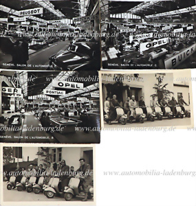 50er Jahre Konvolut 5 tlg. s/w Fotopostkarten, darunter 3 vom Salon De L`Automobile Genf sowie 2 weitere von einem Vespa Treffen in Besigheim, versch. Formate