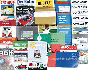 Konvolut über 40 tlg. darunter 10 Bücher wie z.B.: "Beetle - an illustrated history"; von N. Reichert; "Volkswagen Raritäten" von C. Vieweg; 2 mal "Volkswagen Typenkunde" von B. Wiersch, etc., 17 Zeitschriften; 1981 & 1984 Golf & Jetta Reperaturleitfaden; 8 VW Magnete, sowie 3 Teile von VW Bus Modellautos