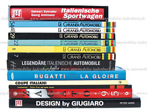 Bücherkonvolut 12 tlg. darunter "Bugatti La Gloire" von Franco Zagari, einband beschädigt; "Zagato Milano 1919-2014" & "Coupe Italiani" von Giorgio Nada Editore; "Design by Giugiaro" von Peter Vann; 5 Ausgaben "Le Grandi Automobili" (Nr.: 7; 8;22; 29; 48 & 54) etc. weitere Titel entnehmen Sie bitte unserem Katalogbild. de./fr.//it./en. Text, mit Gebrauchsspuren