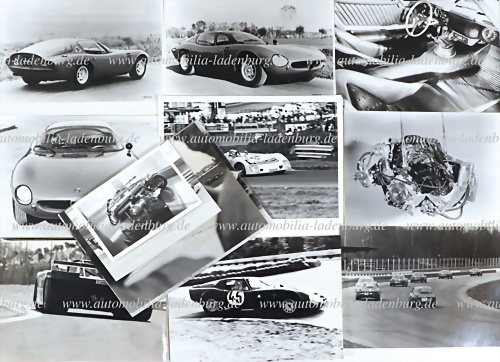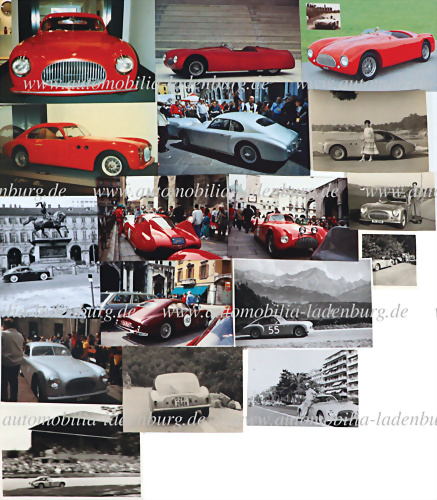 Konvolut 7 original s/w Aufnahmen, Cisitalia 202, sowie 1 s/w Abzug neueren Datums, dazu 7 Farbaufnahmen 80er Jahre und 2 Postkarten, verschiedene Formate