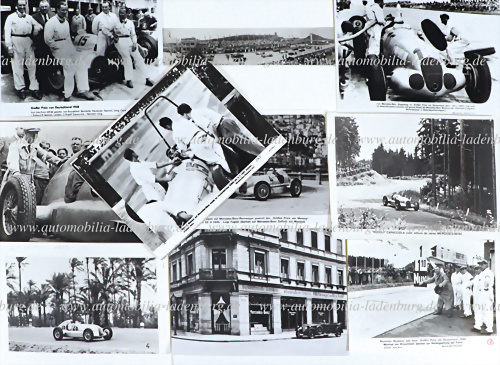 Konvolut 23 s/w Werksfotos (Abzüge ca. 80er Jahre), "Großer Preis von Deutschland 1938"; "Intern. Eifelrennen 1937"; "Großer Preis von Italien in Monza 1934"; "Eröffnungsrennen auf dem Nürburgring Juli 1927"; "Intern. Klausenrennen 1934"; "Richard Seaman"; "Großer Preis von Monaco 1935"