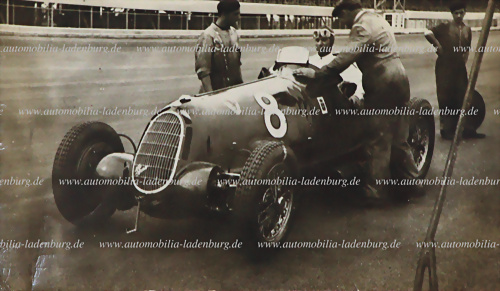 Konvolut 8 original s/w Aufnahmen, unter anderem Era Rennwagen 1936; Startszene GP Dieppe 1935; Mannin Moar 1935, sowie Rennaufnahme 1936; Charles Martin Sieger Avusrennen 1937; Startszene Avus 1937, sowie Eifelrennen 1936, verschiedene Formate